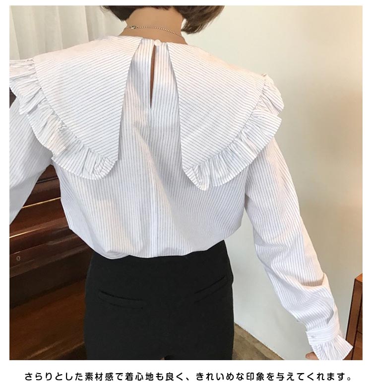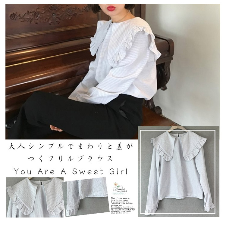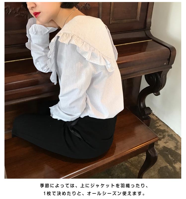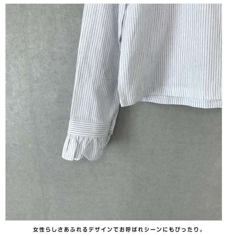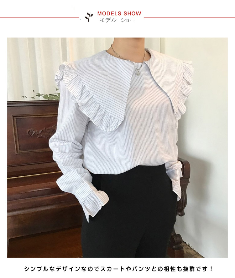 | 大人シンプルでまわりと差がつくフリルブラウス。シンプルなデザインなのでスカートやパンツとの相性も抜群です!特に、フリルのスカートやデニムとのコーディネートが、とってもフェミニンですね♪さらりとした素材感で着心地も良く、きれいめな印象を与えてくれます。季節によっては、上にジャケットを羽織ったり、1枚で決めたりと、オールシーズン使えます。 | |