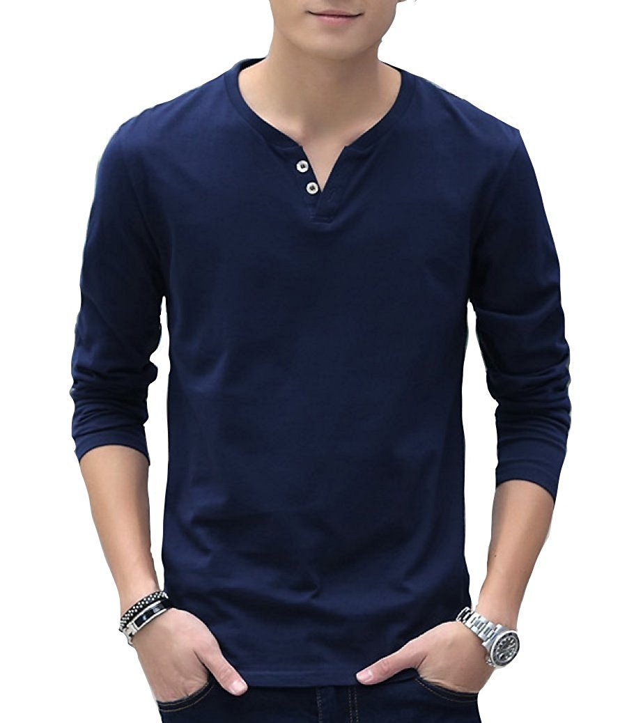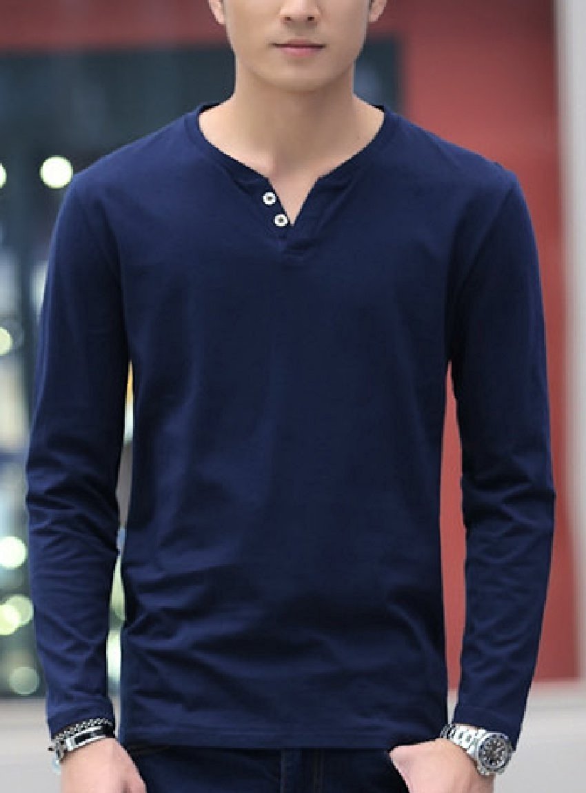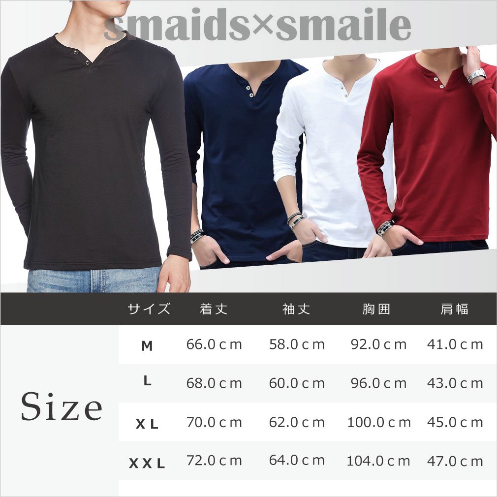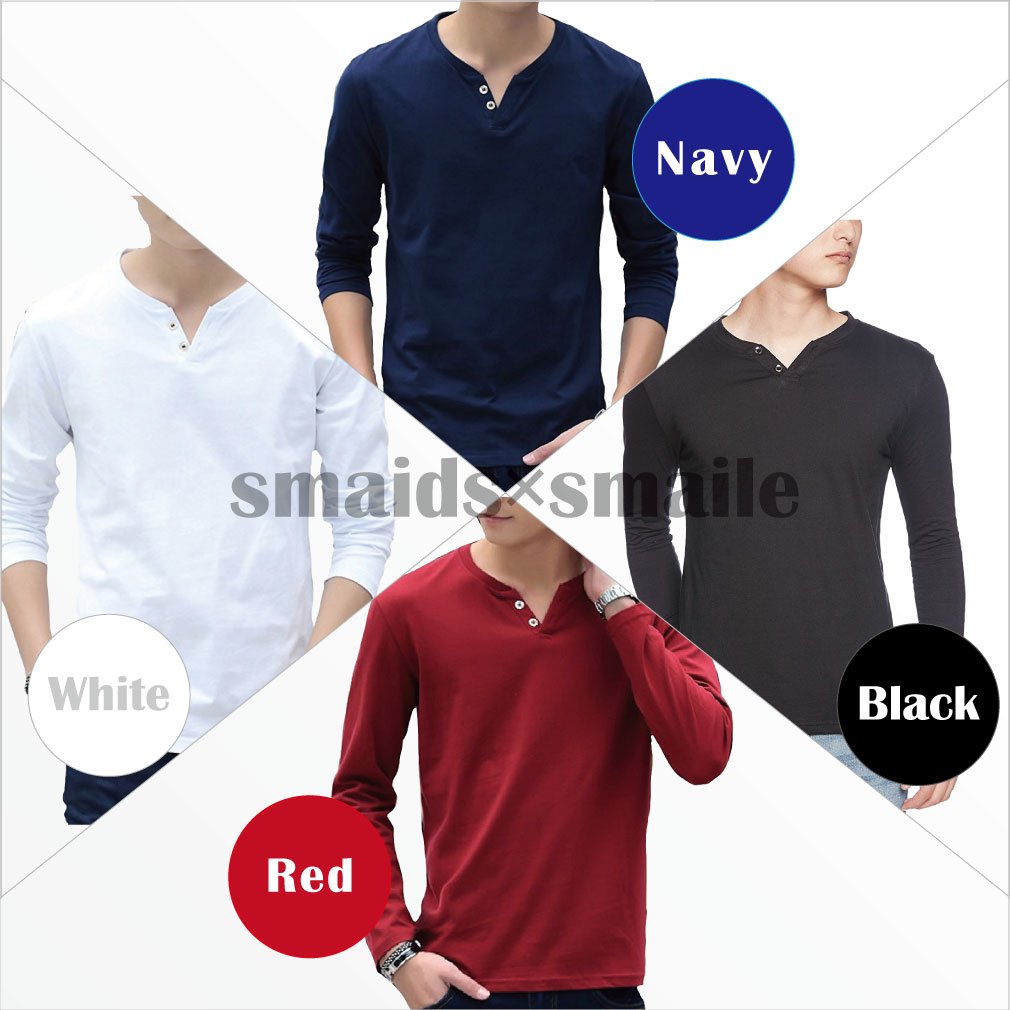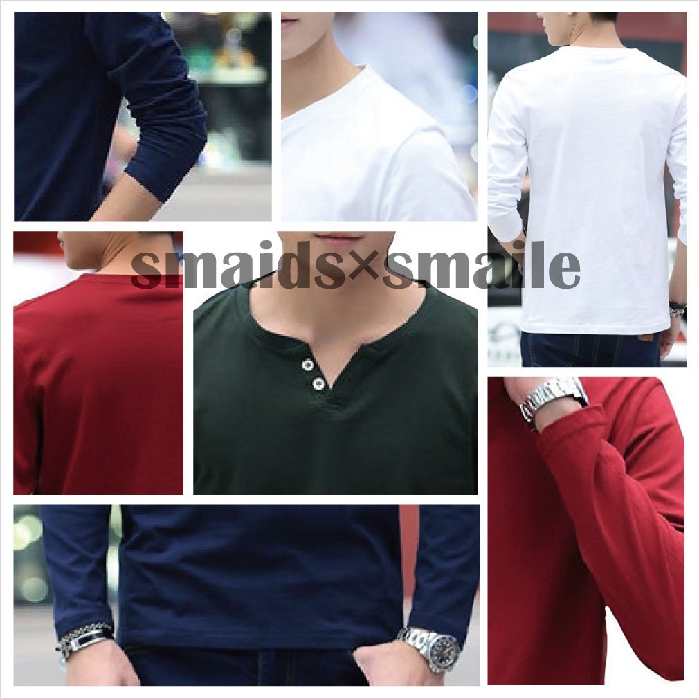 【Smaids × Smile】 V-neck Men's Henry Button Design T-shirt Cut and sewn Long Sleeve Plain Safety