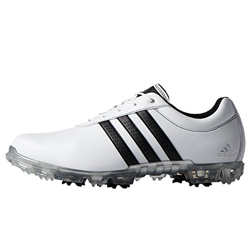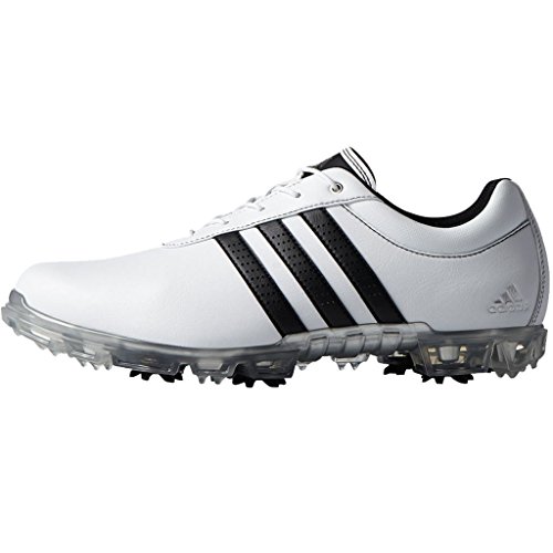 Studio : Adidas Publisher : Adidas Binding : Misc. Product Description These men's golf shoes are built with extra room in the forefoot and a locked-down fit in the midfoot and heel that helps you optimise your swing. The wide-fit shoes have a synthetic upper that sheds water and a puremotion® outsole for great traction and stability. 0