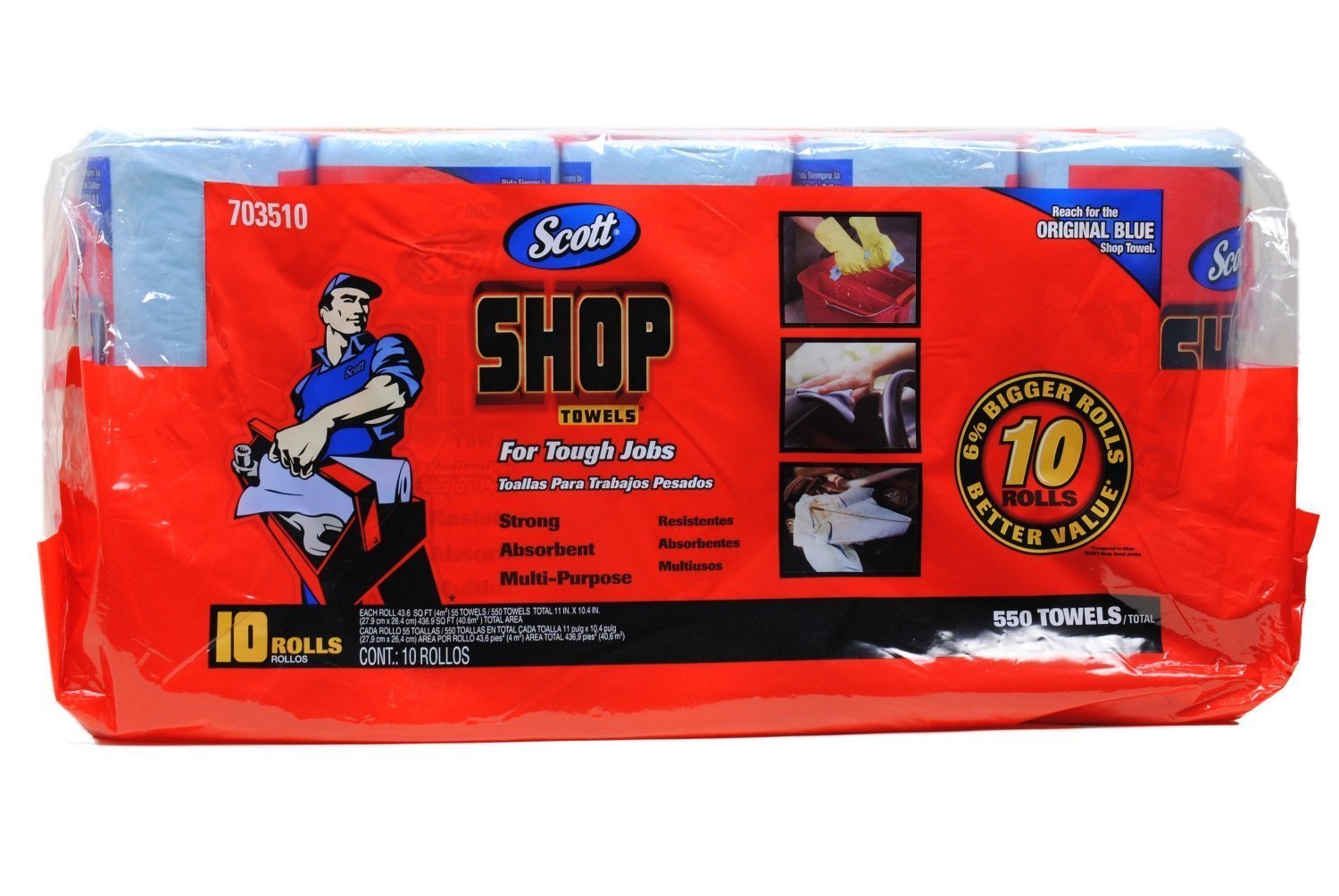 Scott Multi Purpose Shop Towels for Hands and Cleanup Jobs Pack of 10 Rolls