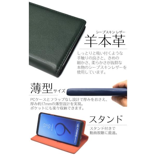 | 商品の説明 | 高級感あふれるシープスキンレザーを使用した、シープスキンレザー手帳型ケース。 しっとりと吸い付くような手触りの良さと、きめの細かさ、柔らかさが抜群な 本物のシープスキンレザーを使用しています。 背面を折り返すとスタンドとして使用できるので、動画視聴に便利です。 横開きタイプなので、手帳のように使うことができます。 また、内側には収納しやすい縦型のカードポケットが付いています。 フラップがない、マグネット内蔵タイプなので開閉が簡単です。 内部ケースはハードケースなのでしっかりとスマートフォンを固定できます。 PCケース採用とフラップなし設計で厚みをおさえ、 厚み約17mmの薄型サイズを実現。 ポケットにも楽々収納できます。 |