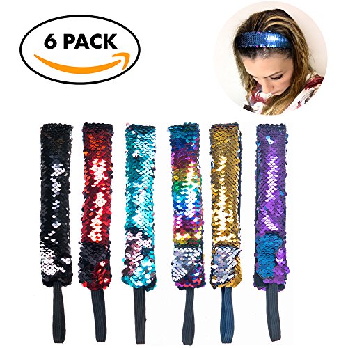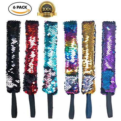 - ♡ SPECIFICATIONS: 6 PACK of Mermaid Headbands with Shiny Reversible Sequins – 6 UNIQUE Colors – ONE SIZE FITS ALLS
