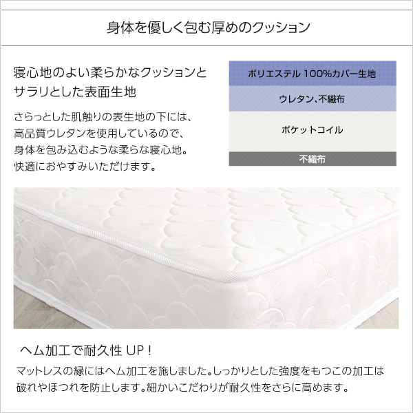 ●クッション材:ポケットコイル,ウレタンフォーム、不織布