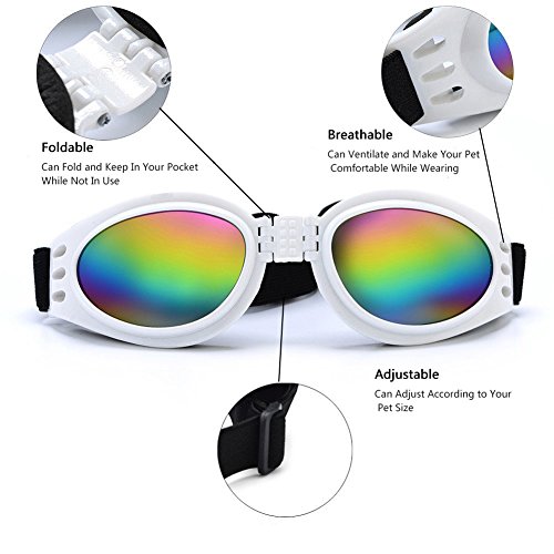 King Tsing Fashionable and Adjustable Dog Sunglasses, Greatly Protect Your Lovely Pet Against UV, Wind, Water, Debris and Frog.