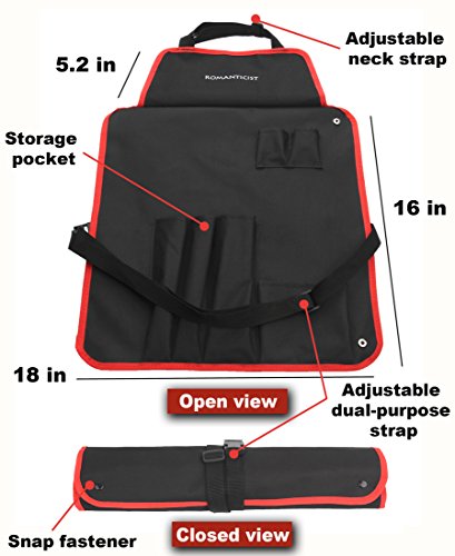 ROMANTICIST BBQ Grill Tools Set with 7Pcs Barbecue Accessories - Stainless Steel Utensils in Apron Storage Bag - Basic Outdoor Grilling Kit Gift for Men plus BONUS BBQ Skewers- Dishwasher Safe