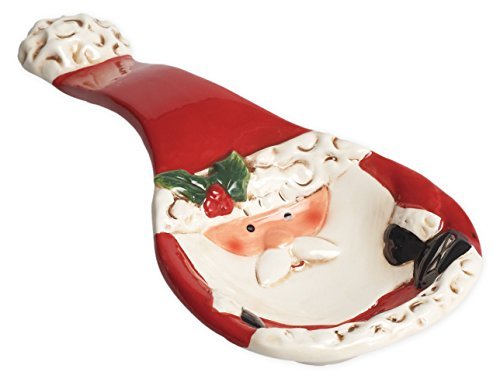(TII)/Kitchen Dining/Cook's Tools Gadgets/DIRECT FROM USA/Red and White Santa Claus 10 inch Ceramic Stoneware Christmas Spoon Rest