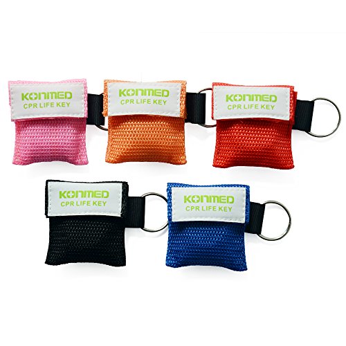 -. Binding : Health and Beauty -. Brand : KONMED -. Color : red, black, blue, orange -. EAN : 0702685352503 -. Feature : Each CPR keychain comes individually packaged with one CPR mask in a nylon keychain pouch / A ventilation tube with one-way valve, which can protect the rescuer during first aid or rescue / small compacted size makes it easy to carry / Materials: Nylon Pouch, Polyethylene / Compact 2" by 2" nylon keychain with ring -. IsAdultProduct : 0 -. Label : KONMED -. Manufacturer : KONMED -. MPN : KON-1719 -. PackageQuantity : 50 -. PartNumber : KON-1719 -. ProductGroup : Health and Beauty -. ProductTypeName : HEALTH_PERSONAL_CARE -. Publisher : KONMED -. Size : package : 12.96*10.23*5.06 inches -. Studio : KONMED -. Title : CPR Face Shield for First Aid Training, Pack of 50 -. UPC : 702685352503