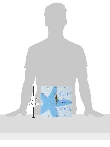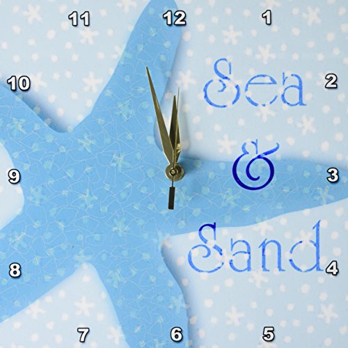 Aqua Sea and Sand Starfish - Beach themed Ocean Art Wall Clock is a wonderful complement to any room in your home or office. Made of durable high grade aluminum. This frameless clock has a high gloss mirror like, UV coated, scratch resistant finish and is suitable for a moist environment. Measures 6" x 6" and requires one AA battery; not included. Battery box is not covered.Feature