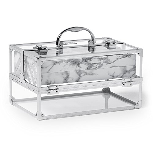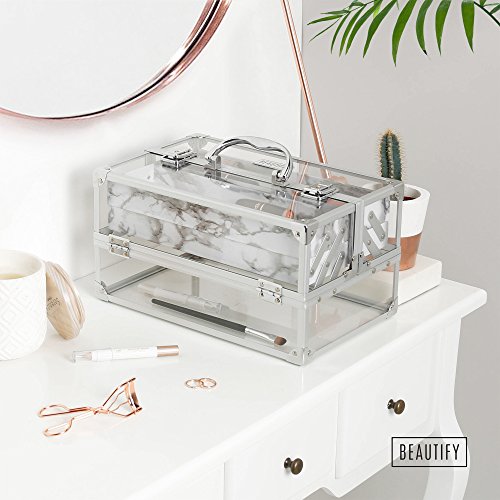 Beautify Professional Large Lockable Acrylic Vanity Makeup & Cosmetic Storage Display Case - Clear (Marble Effect with Chrome Frame)