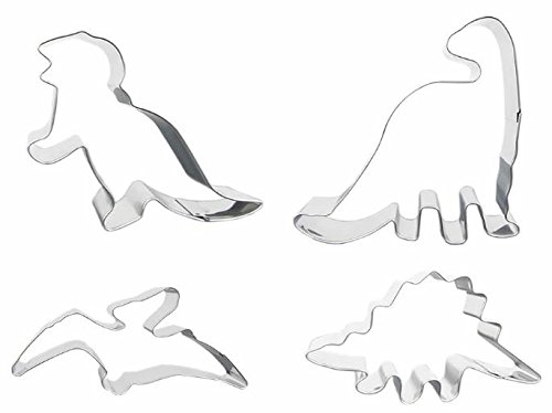 - DINOSAUR COOKIE CUTTER SET – You will receive a set of four dinosaurs. The shaped cookie cutters will include the Tyrannosaurus Rex (T-Rex which is 4" x 2"), Brontosaurus (4.25" x 2.25"), Pterodactyl (5" x 3"), and the Stegosaurus (4" x 2"). The shapes range in size from 2 inches to 5 inches making them perfect for both adults and kids small hands.