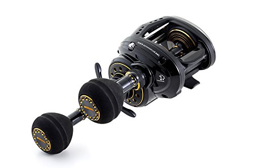 Large diameter gear, high speed, double big round knob mounted, low profile bait casting reel.