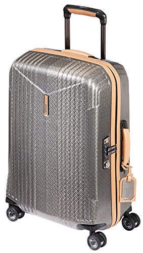-. Feature : Unique design with irregular rib details / Virgin aluminum, dual tube pull handle / Leather carry handles / Superior, double spinner wheels / 21.7x15.8x9