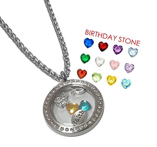 Set: Locket Necklace Plus 15 Floating Charms.You Can Switch the Charms using every day the charms you choose. You will receive 12 Heart Shape Color Floating Charms, one with each Color of the month Plus 3 Christian Charms: One Ichthus, One Cross One Faith Charm. The set includes a Stainless Steel Spiga Round Necklace with a secure Lobster System Clasp. New with Tag. Gorgeous Stainless Steel Magnet Closing System. Locket Plus 15 Floating Charms. Christian Meaning Jewelry is our goal. It comes in a plastic bag with Logo. Ready for a gift. 100% Fast Delivery. Same Day Tracking Number. 15 Days Money Back Warranty. The return items should be sent with the original item Label Tag on the piece.Feature