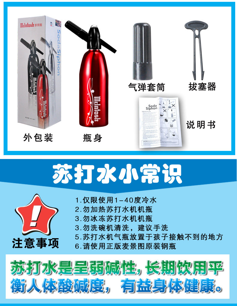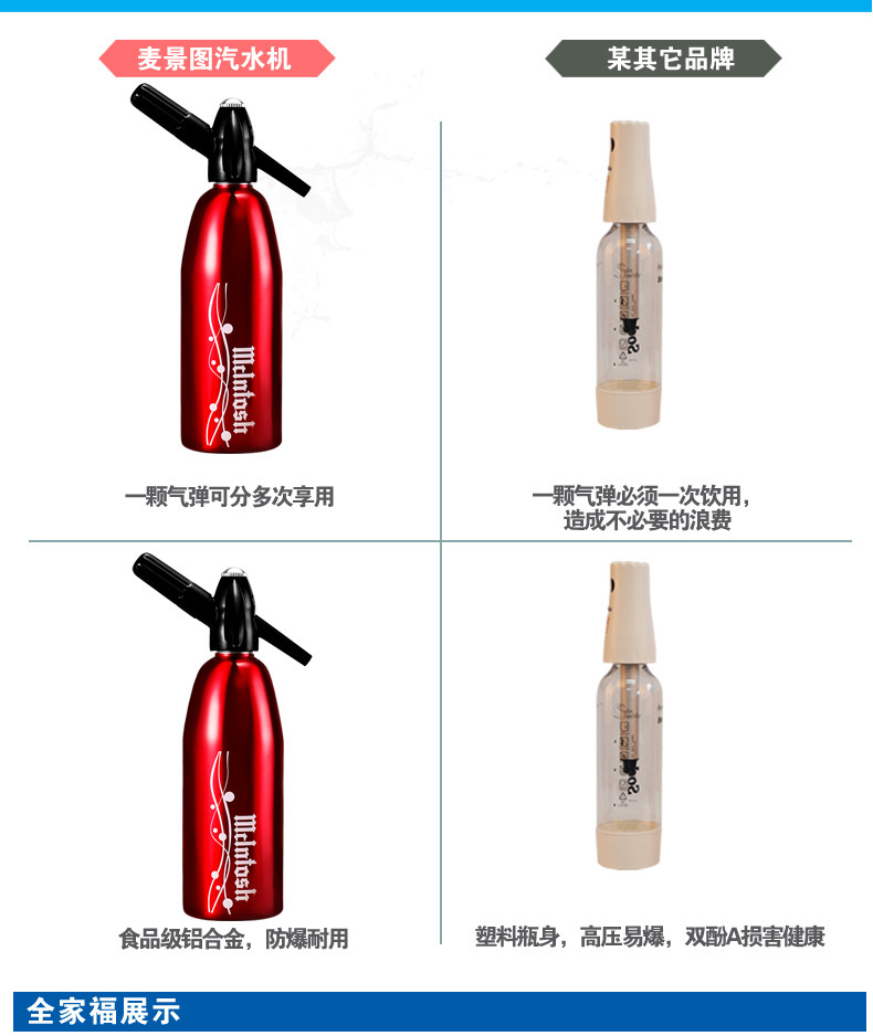 麦景图家用汽水机自制果汁机苏打水机枪气泡水机商用饮料机送汽弹
