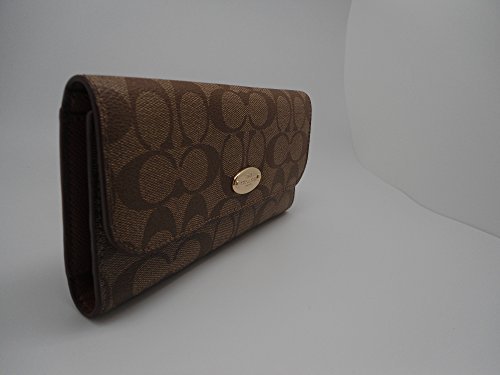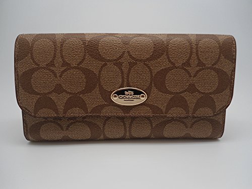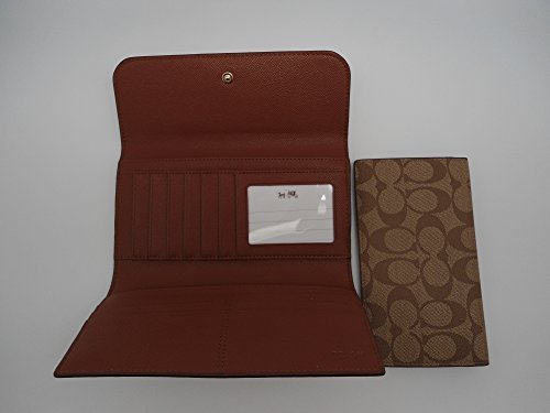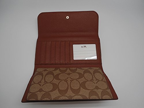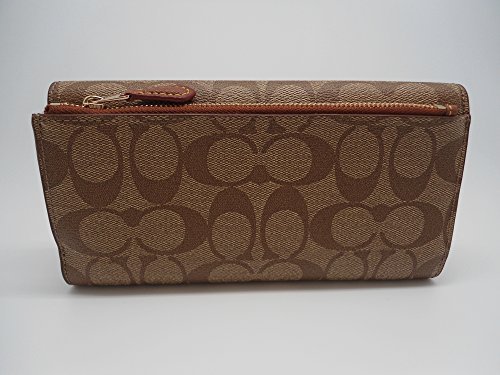 COACH SIGNATURE PVC COATED CANVAS CHECKBOOK WALLET 52681 KHAKI/SADDLE