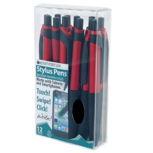 Monteverde S-106 Click Action One-Touch Ballpoint Pen with Top Stylus, Red, 12-Pack (MV36174)