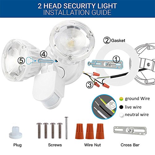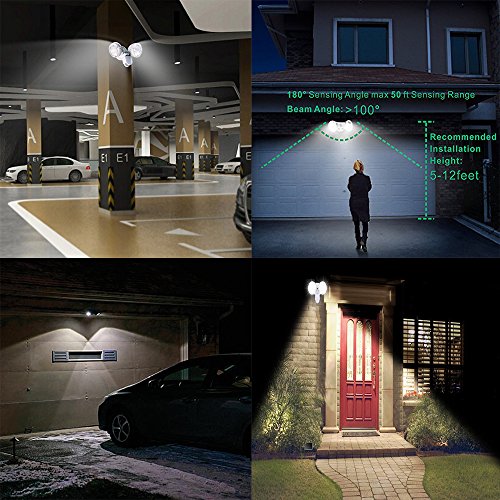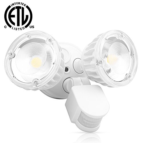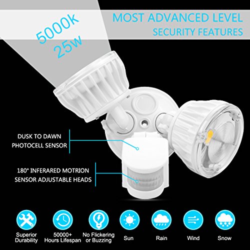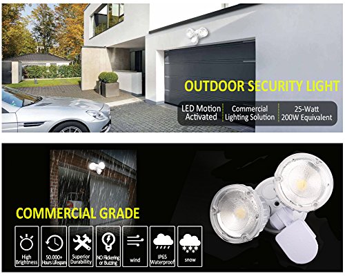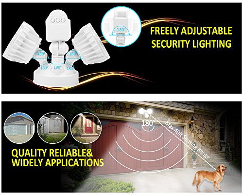 - ▶HIGH PERFORMANCE: Dual-Head Motion Sensor Light 2 ultra-bright LED light heads, produce up to 3500lm high brightness clear white light, provide efficient lighting for your exterior living environment and adds extra safety for your home