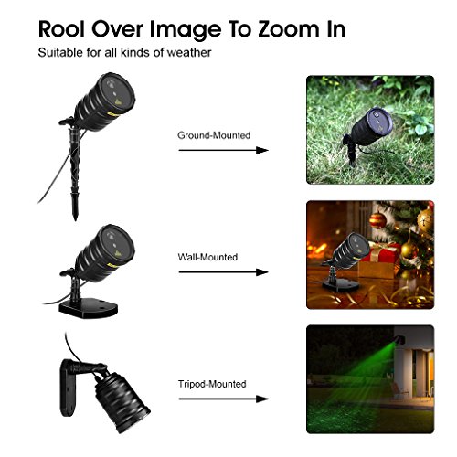 - SIMPLE AND CONVENIENT: IP65 waterproof laser Christmas lights can be mounted anywhere with the included indoor base and outdoor plug; no installation is needed, save you time and effort