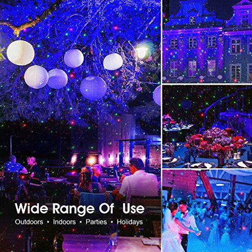 - PERFECT FOR FESTIVALS: enjoy the watching the stars changing and flashing on the breathtaking aurora background; red and green laser lights cover up to 3,541 sq fts area; perfect for Christmas, Halloween, holiday entertainment, parties and more
