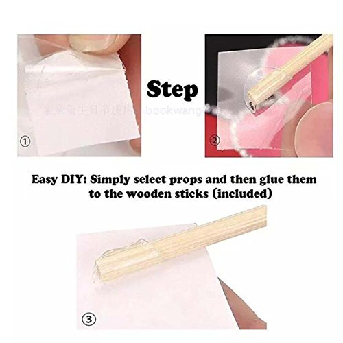 Our photo booth props are easy enough for you to help put includeed glue dots and glue-tapes to attach wooden dowels onto props.