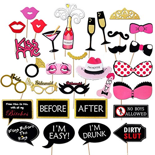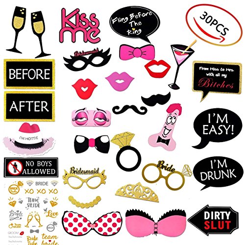 Photo Booth Props,OWEV 30PCS Bachelorette Party Photo Booth Props on for Bachelorette Party Wedding ,Runions,Dress-up Costume