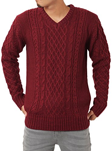 -. Title : JIGGYS SHOP (ジギーズショップ) ニット セーター メンズ Vネック ケーブル編み 厚手 長袖 防寒 ボーダー アメカジ