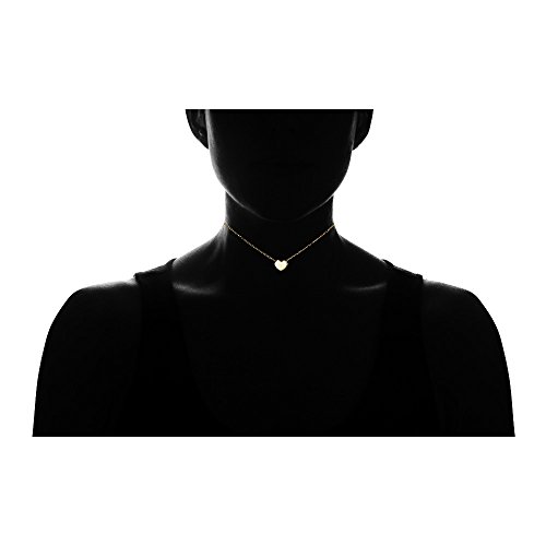Choker necklace showcases a simple delicate tiny polished heart. The necklace is 13" long plus a 3" extender. This choker necklace is perfect for kids, teens or adults.
