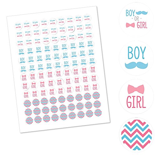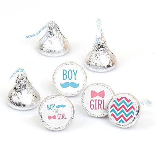 Chevron Gender Reveal - Baby Shower Round Candy Sticker Gender Reveal Favors - Labels Fit Hershey’s Kisses (1 sheet of 108)