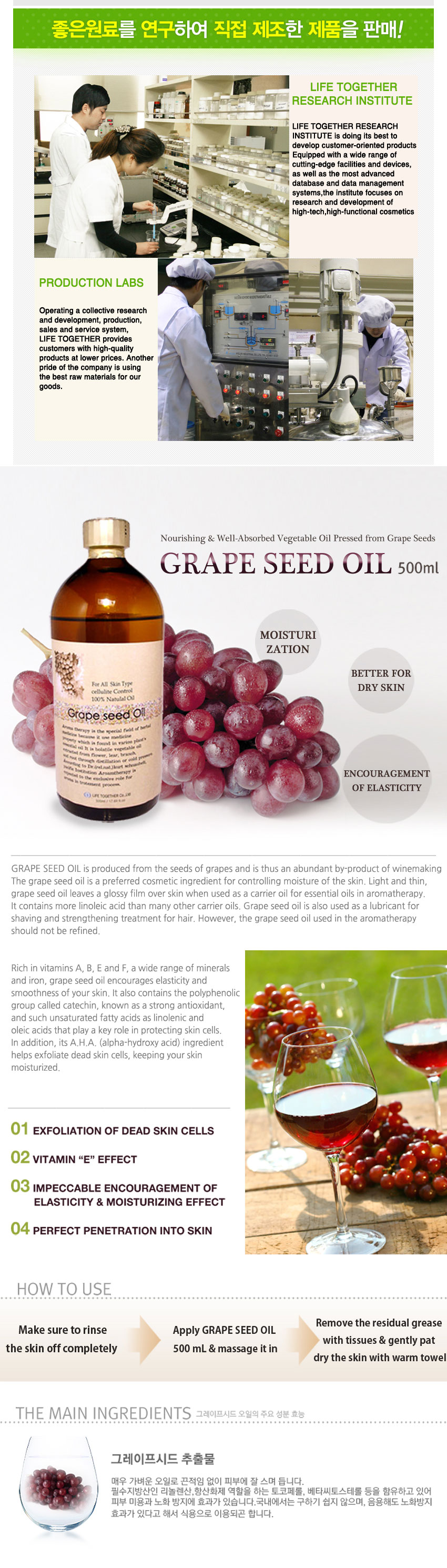 · Nourishing and well absorbed vegetable oil from Grape Seeds