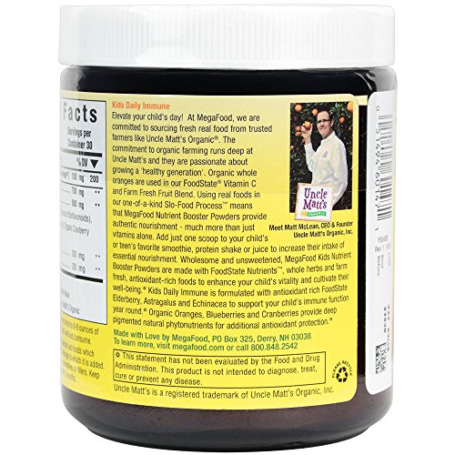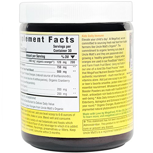 MegaFood Kid's Daily Booster powders are boosting up breakfast time so you can take the tug-of-war out of your mornings! Current research shows that the average child?s diet doesn?t provide the nourishment required for optimal growth, development & overall well-being. Supplementation of a multivitamin is highly recommended to fill in common nutritional gaps during this important phase of growth. MegaFood is proud to introduce 3 unique formulations to meet the changing nutritional needs of children throughout the year. Add a nourishing boost to any smoothie, shake or beverage without adding any additional sugars, sweeteners, flavorings, colorings or preservatives to your child?s diet. Kids daily booster formulas are made with farm fresh whole foods, herbs and FoodState Nutrients to support health and well-being of children 5 years of age or older!Feature