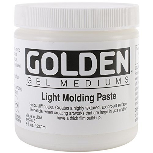 Offers dramatic weight reductions when building thick layers of acrylic. The density of the wet product is over 50% less than traditional molding paste, resulting in a significantly lighter film. This dramatic weight reduction will be beneficial in creating artworks that are large in size, have thick film build-up, or both. The product dries to an opaque, matte finish. The consistency is designed to hold stiff peaks to create a highly textured surface. Blends with acrylic colorsFeature