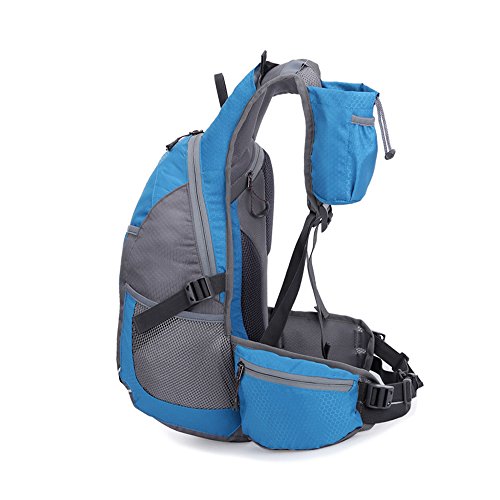 -. Feature : Material: nylon / Capacity:25L Size:45x25x20(L X W X H) / Adjustable shoulder strap and waist strap to fit your need. / Integrated breathable mesh pad in the back,breathable and not my,air flow channel design. / Convenient for hiking,traveling,camping,running,cycling,mountaineering.