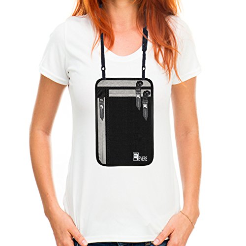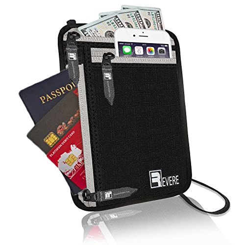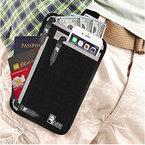 -. Feature : TRAVEL SAFE- Independently RFID Tested with a 99.99% Protection Score for Secure RFID Blocking / TRAVEL SECURE - Lightweight, Anti Tear, Waterproof material with a breathable mesh back panel and stretchy secure waist strap / TRAVEL EASY - Front pocket has clear phone touch responsive screen and earphone hole for easy on the go phone control / TRAVEL ORGANIZED - Fits 2 Passports (Stacked), Cell Phone, 4 Debit / Credit Card, Loose Coins and US Bills laid flat / TRAVEL PROMISE - No questions asked 100% Money Back Guarantee & LEFTIME replacement guarantee