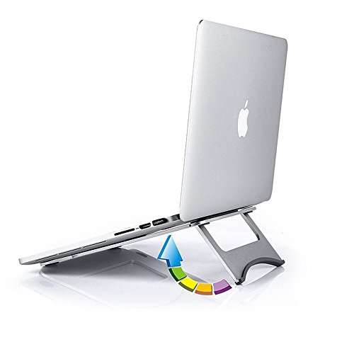 -. Feature : COMFORT - Adjustable tilt encourages a more comfortable posture by raising the notebook display to eye level and placing it at an optimal viewing distance. Minimize your chances of carpal tunnel when using your laptop for extended periods of time. This is a small investment for avoiding future stress and pain! / SOLID, FOLDABLE, COOL- Easily fold and slip this compact laptop stand in your bag and take from home, to office, to store, and back! Don't worry bending or breaking, because it's made of tough STUFF! The Aluminum Alloy stand naturally dissipates heat to air faster than plastic or wooden laptop support without the use of battery power or electricity. / ELEGANT SLEEK CONTOURS - Smooth, durable, premium aluminum alloy matches all surfaces and devices (especially your macbooks). We've made this to bring your home and office desk setup to the next level! / APLLICATION - Compatible with Ipad,Mini iPad,ipod touch2/3,iPad 4,iPad 2,iPad 3,4th iPod touch ; Surface dimension: 8.9x10.2x2.7 inches (LxWxH) at max height. / NO NOISE,NO CABLE - No Charging, No untangling cords. No extra power is needed with this ventilated hollow-out structure,under and in in back. Comfort yourself and cool your pad!