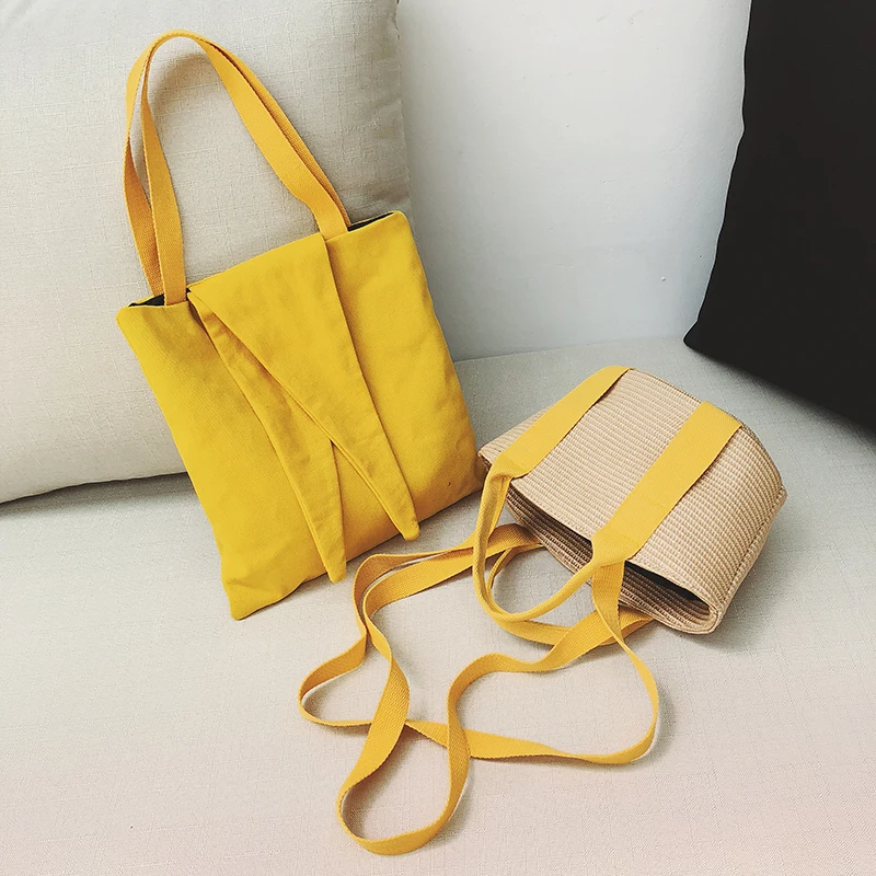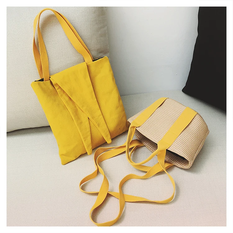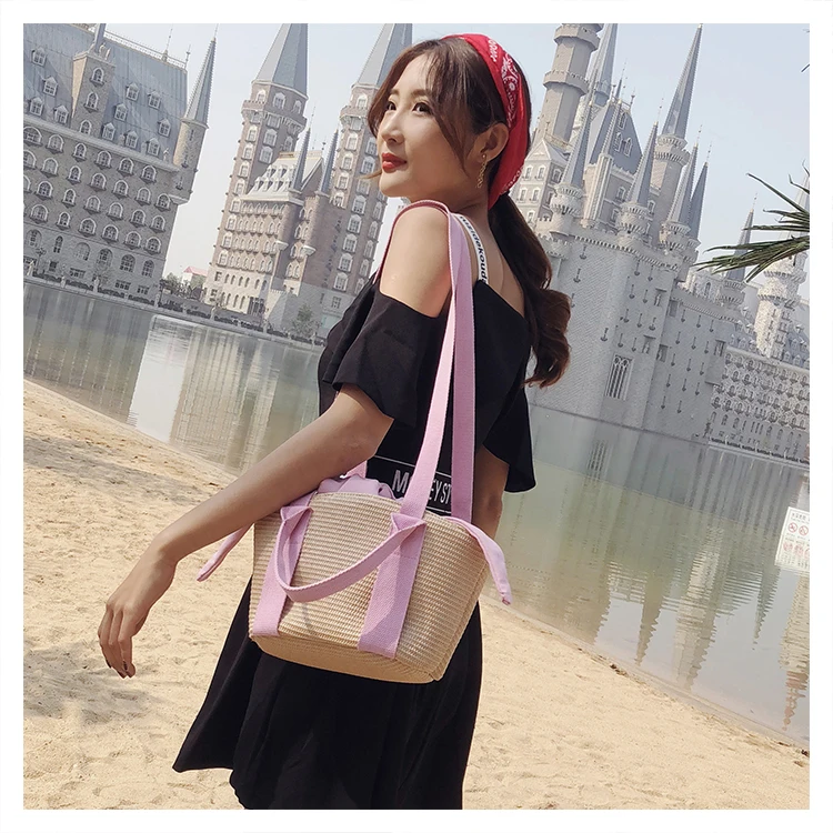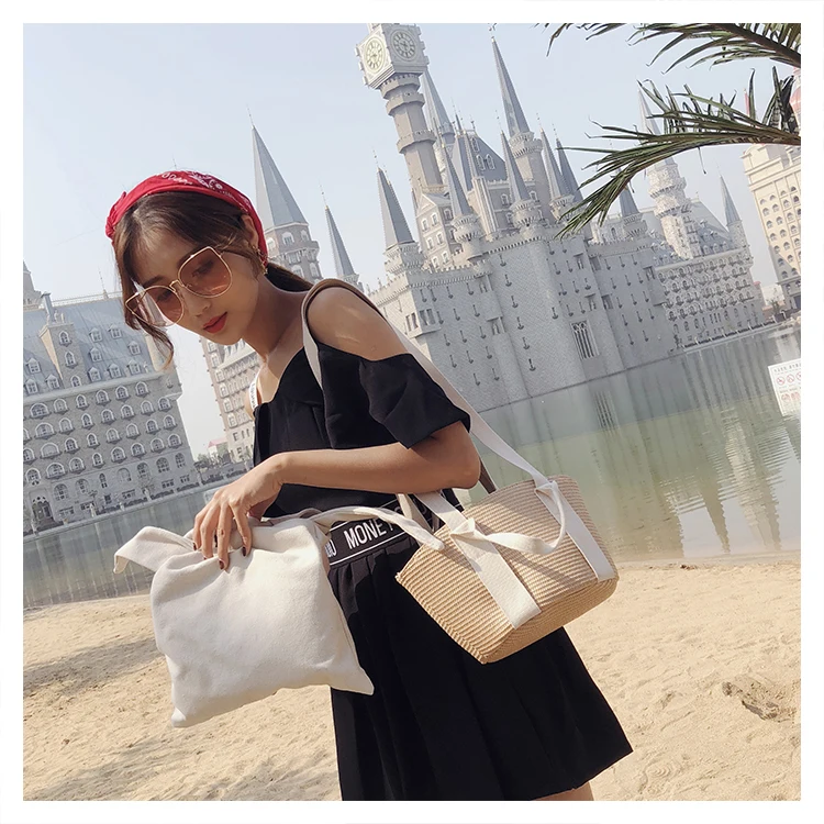 Handmade Rattan woven handbags:holiday multi-function canvas bags