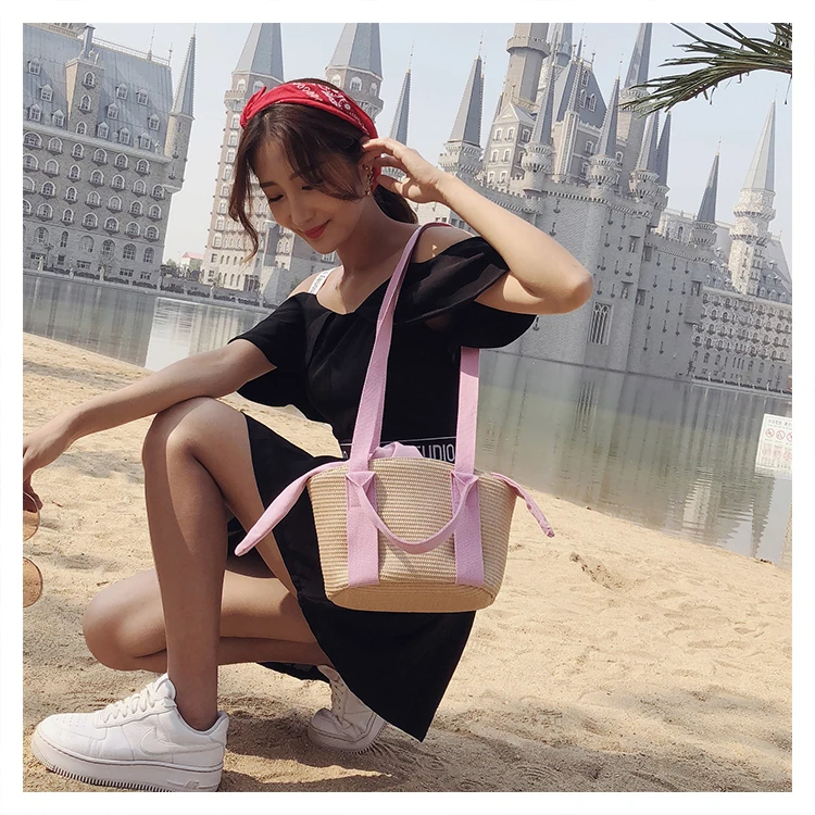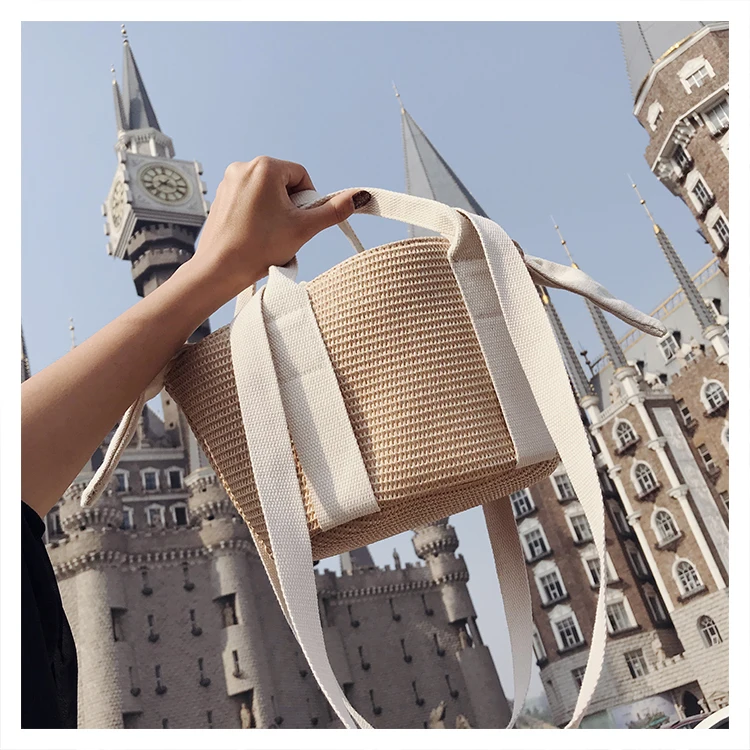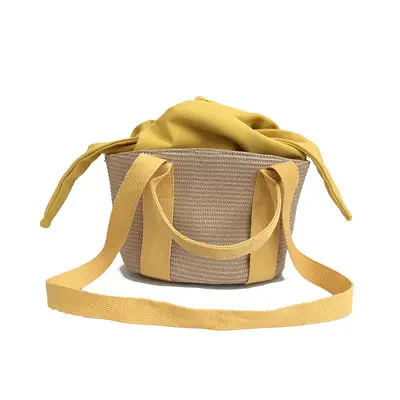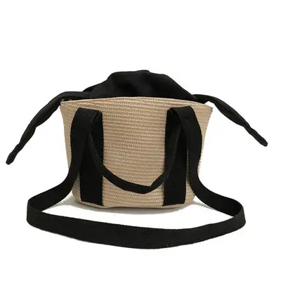 Luxury Wheat-straw Woven:panelled straw bucket bags