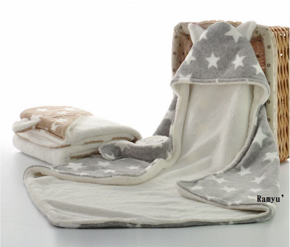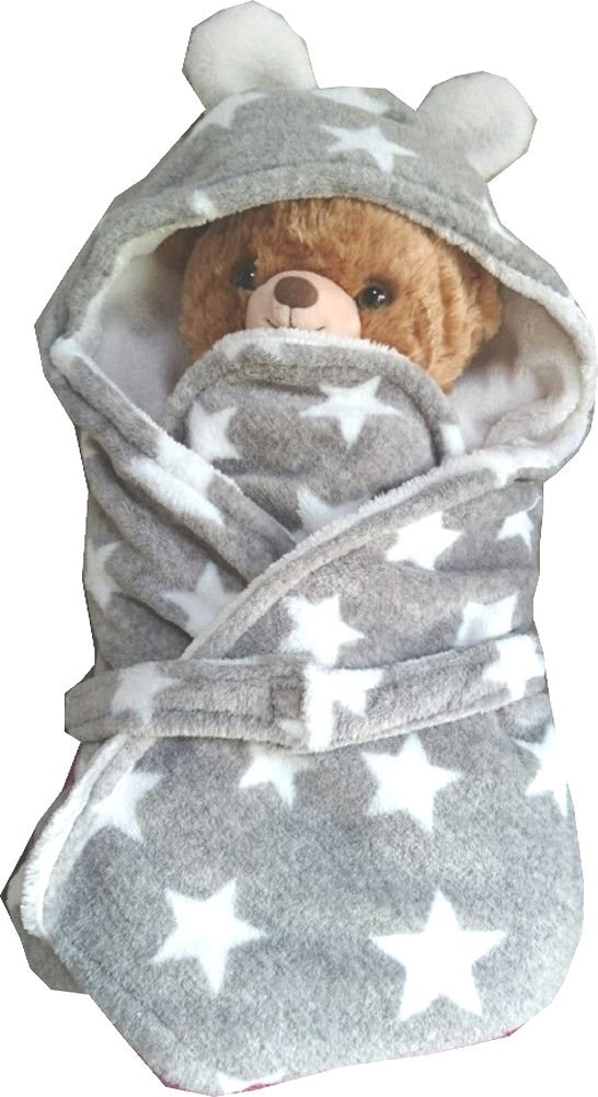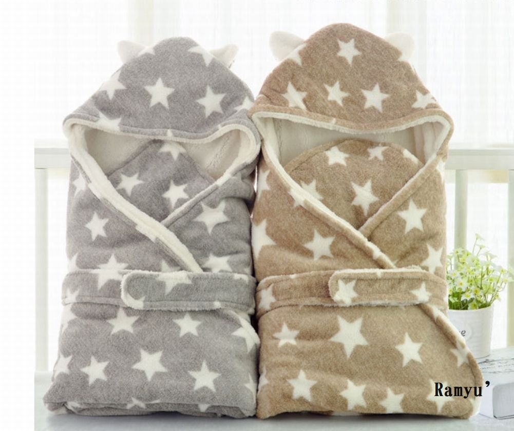 Wrapped baby gently with fluffy fleece cloth, with hoods.