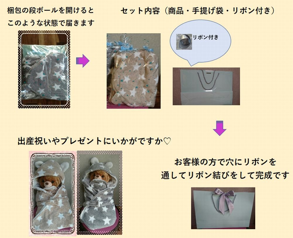 We will deliver it with simple transparent wrapping and a paper bag, so it is recommended for baby gifts and gifts.