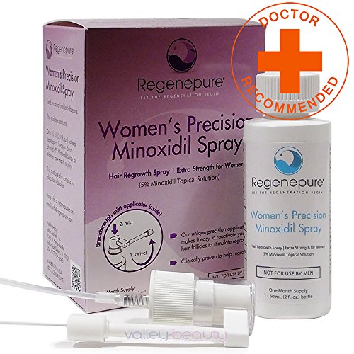FOR WOMEN: Regenepure Precision 5% Minoxidil Spray is specially designed to precisely treat hair loss in women. The fine mist applicator ensures a clean and targeted application of minoxidil without any cleanup.