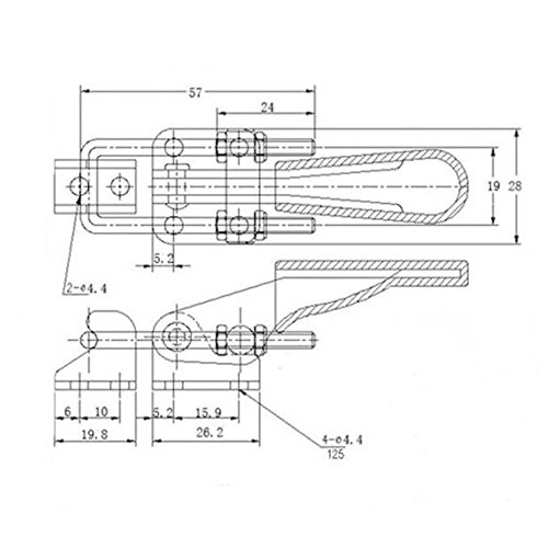 - 4Pcs Side Mount hold-down toggle clamp, U-shaped clamping bar. Plastic cover handle for easy, safe and comfortable operation.