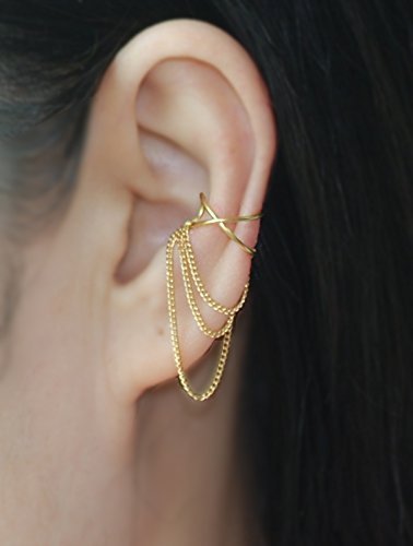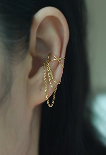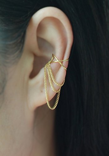 -. Title : 20 gauge Cross X ear cuff with 3 Chains ,No Piercing Cartilage Ear Cuff, Ear Jacket, Ear Wrap / Please select an option.