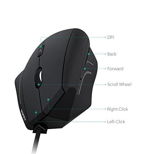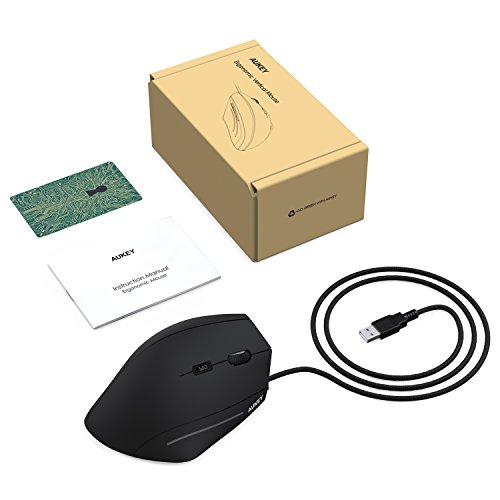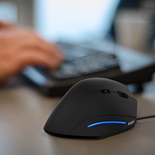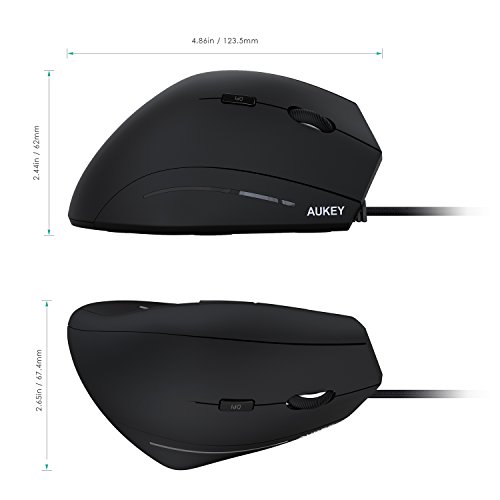 AUKEY Ergonomic Mouse, Wired Vertical Mouse with 2 Adjustable DPI Levels 1000 / 1600 and 6 Buttons for Computers
