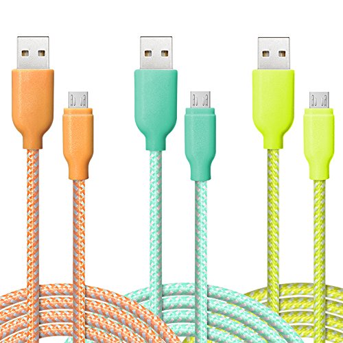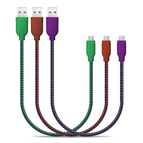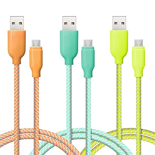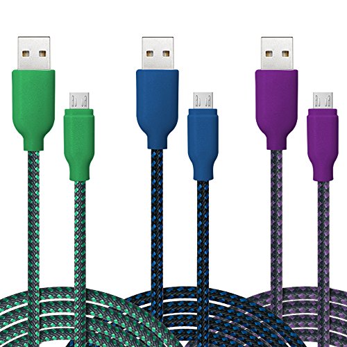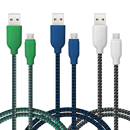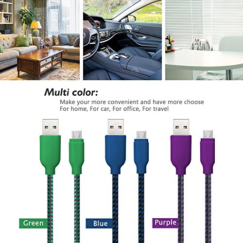 USB Cable, 3 Pack Ace Teah™ 6.6ft Long Reversible Micro USB to USB Cable Nylon Braided Quick Charge Cable and Data Sync Cable A Male to Micro B Charge for Android Samsung - Green, Blue, Purple