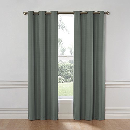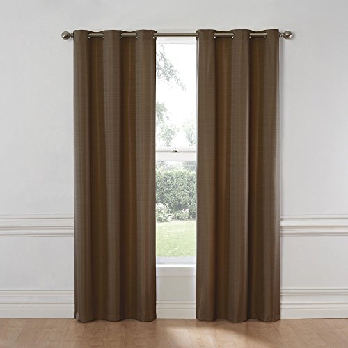 Transform any room in your home with the eclipse Nikki blackout curtain. Independently tested, eclipse offers a superior blend of window fashion design and blackout technology for any decor. Update the bedroom, living room or dining room and enjoy the light blocking, noise reducing, energy-saving benefits of eclipse. Perfect for daytime sleepers of all ages, home theater enthusiasts and energy saving conscious home owners, eclipse curtains offer style versatility for any living space. The magic is in the Thermaback construction. The innovative foam-backing is applied to the fabric and allows you to enjoy all of the light-blocking, noise reducing and energy saving benefits, while providing the same fashionable style and elegance of naturally flowing curtains. Hang eclipse curtains in any bedroom to achieve an optimal sleeping environment. Each Nikki grommet panel measures 40 Inch wide in your choice of 63, 84 or 95 Inch long. 1.65 Inch antique bronze grommets fit up to a 1.5 Inch rod. Tone on tone textured weave offers a subtle horizontal stripe. Available in, chocolate, mushroom, river blue, smoke and spice. Curtain rod sold separately. Sold as single panel. 100% polyester. Machine wash gentle cycle, tumble dry, do not bleach. Imported.Feature