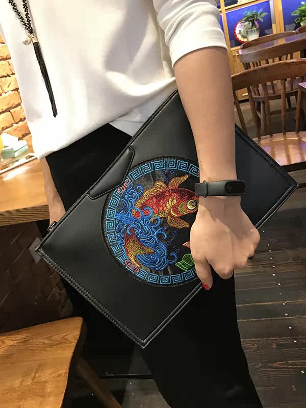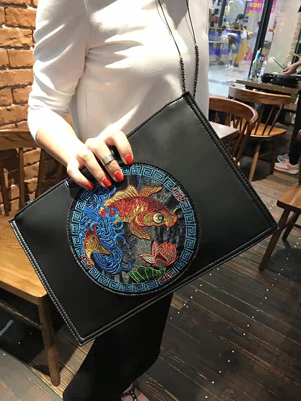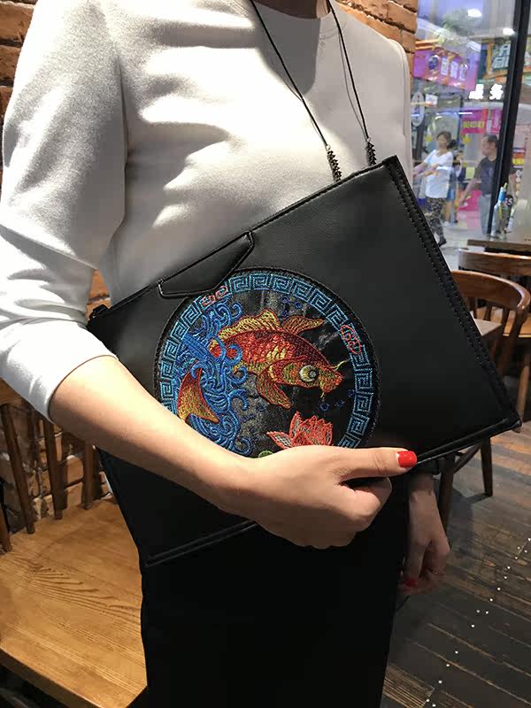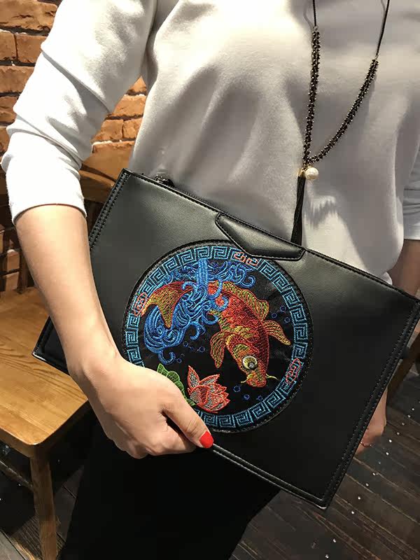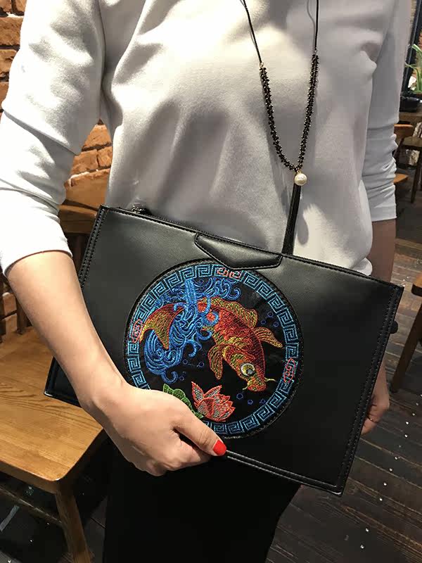 刺绣手拿包女新款原创手包时尚复古手挽包百搭潮流单肩斜跨包