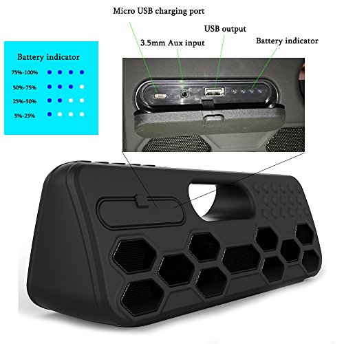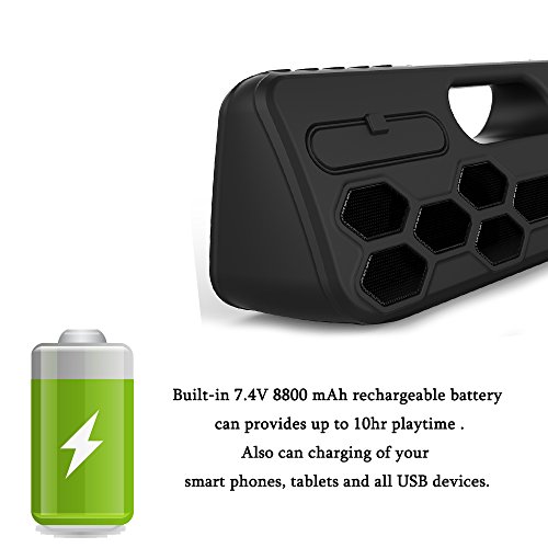 It is a compact bluetooth speaker that can be wirelessly connected to bluetooth devices such as smart phones,tablets and computers to playback any music collection stored on them.thanks to its powerful battery,the system delivers full stereo sound, separate from any mains supply, for up to 10 hours. Features: High quality crisp and clear sound. Newest bluetooth 4.2 portable speakers. IPX5 water resistant. Built-in 8800 mAh battery for up to 10 hours at the volume of 70% with full charge. TWS dual pairing for 4-speaker surround sound enjoy 40 watts of wonderful music. Built-in Mic for hands-free speakerphone. Ultra-lightweight. Very cool and fashion design. Wireless connectivity. Compact and portable speaker perfect for many outdoor activities like driving, camping, golf, beach or picnic. Specifications: Model Number: ZF-502. Waterproof Rating: IPX5. Input: 5V / 2A. Audio Output: 100W x 4. USB Output: 5V / 1A. Battery Capacity: 8800mAh. Charging Time: 7-8 hours. Play Time: 10 hours. Range: 10m / 33ft. Weight: 1086g. Dimension: 357 x 110 x 27mm. Package Includes: 1 x Bluetooth Speaker 1 x Audio Cable 1 x USB Charging Cable 1 x User Manual 0 |