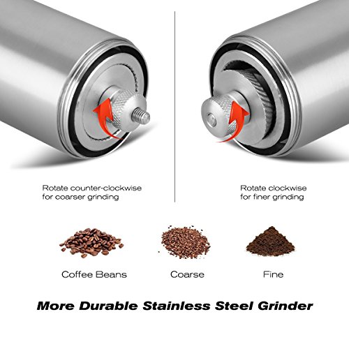 Premium Quality: The whole coffee grinder is made from high-quality food-grade 304 stainless steel, which is extremely durable and healthy for use