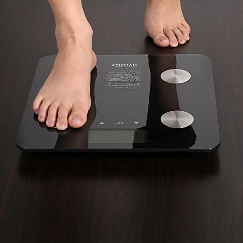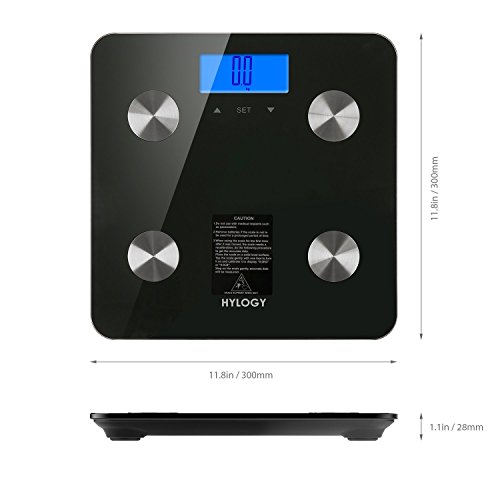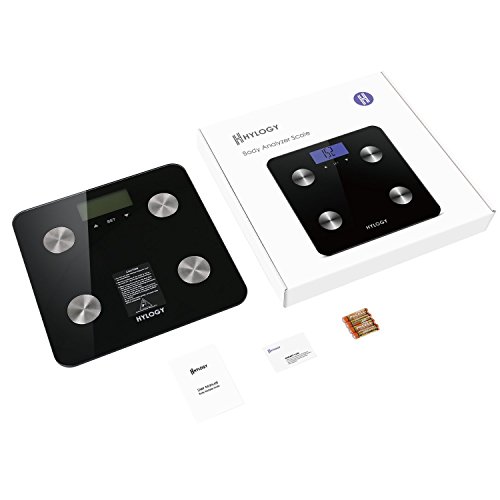 -. Feature : Accurate: Equipped with 4 high precision sensors, can weigh from 11 pounds up to 400 pounds in 0.2 lbs increments / Multi-Function: The fat scale can measure your weight, fat, bone, water, muscle, BMI, BMR, etc., and it has multi-mode options, units can be converted, it will care of your health at anytime and anywhere / Easy to Use: The large and readable LCD can record up to 10 users. It has touch switch function, and also can switch on or off automatically. Very convenient / Safe and Drop Resistance: It uses high-end electrode chip tempered glass - drop resistance. And it has ABS environmental protection shell and silicone anti-skid pad - safe enough / What You Get: Smart fat scale, 3 AAA batteries, user manual, warranty card, and Hylogy lifetime friendly customer service