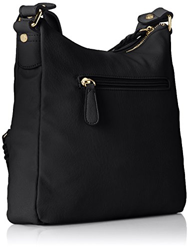 -. Feature : Faux-leather handbag in slouchy silhouette featuring gold-tone hardware and braided zipper pulls / Adjustable cross-body strap