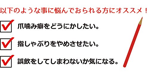 ギネス認定の強力苦み成分で高い抑止力を発揮します。有機溶剤を使用していないので、鼻にくる刺激臭はありません。ぬるま湯で洗い落とすことができるのでリムーバー要らず。誤飲されそうなものに事前に塗る事によって未然に予防します。安心の日本製です。